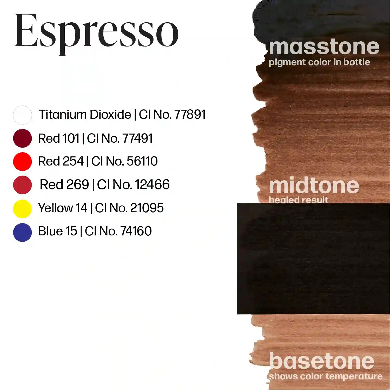 رنگ اسپرسو پرمابلند، یک رنگ تاتو قهوه ای تیره با پایه سرد (زیر لایه خنثی و متعادل) است که برای ابروهای طبیعی گزینه مناسبی است. همچنین دارای پوشانندگی متوسط تا بالا میباشد. فرمولاسیون این رنگ ابرو اسپرسو به گونه ای است که پس از ترمیم، رنگ بدون تغییر باقی میماند و هیچگونه جا به جایی ندارد. از رنگدانههای آلی و معدنی ساخته شده است در نتیجه ماندگاری و غلظت بالایی دارد.